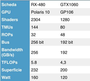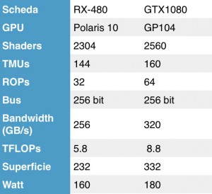 Cominciamo con un confronto tra le caratteristiche tecniche delle schede (con chip completo) presentate dalle due rivali:
