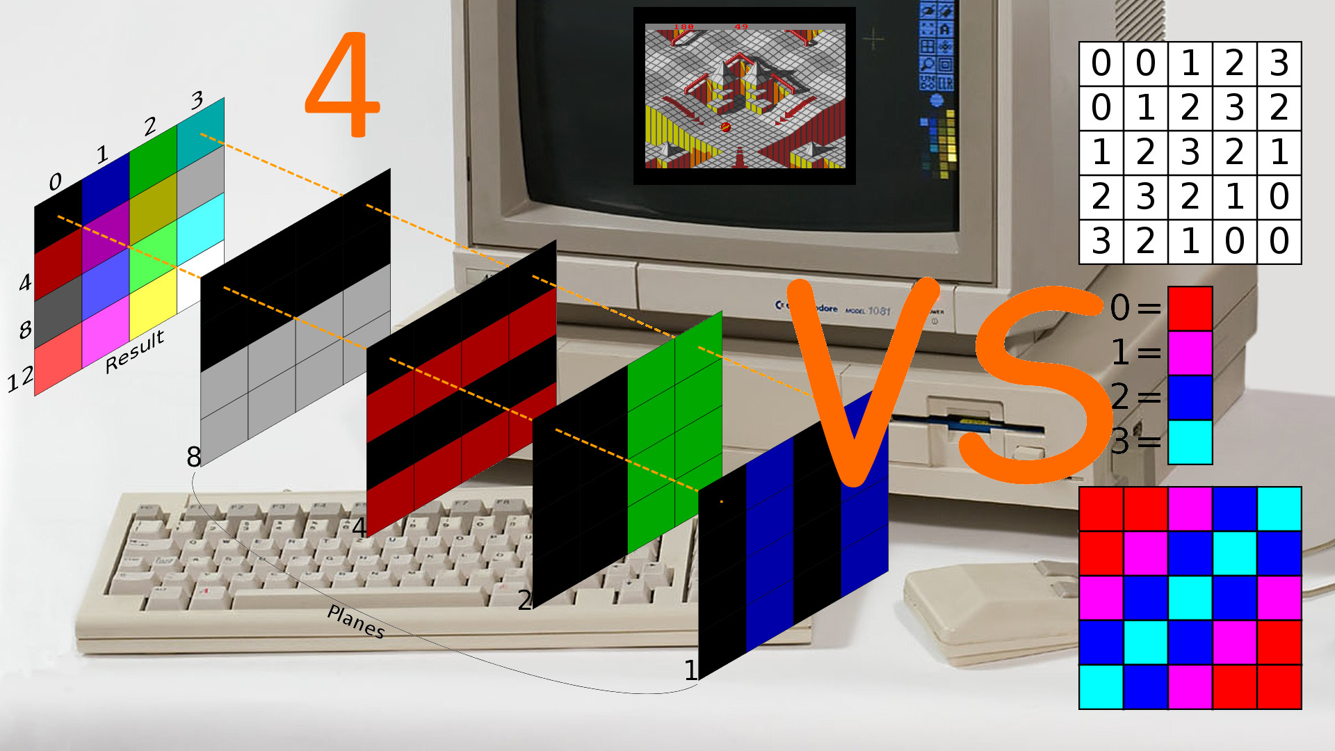 In ogni caso il tutto rimane per nulla esoso in termini di risorse necessarie, come già visto in precedenza (i risparmi dovuti alla mancanza di tanti puntatori ai bitplane coi loro registri annessi consentono di riutilizzare un po’ di queste risorse allo scopo).