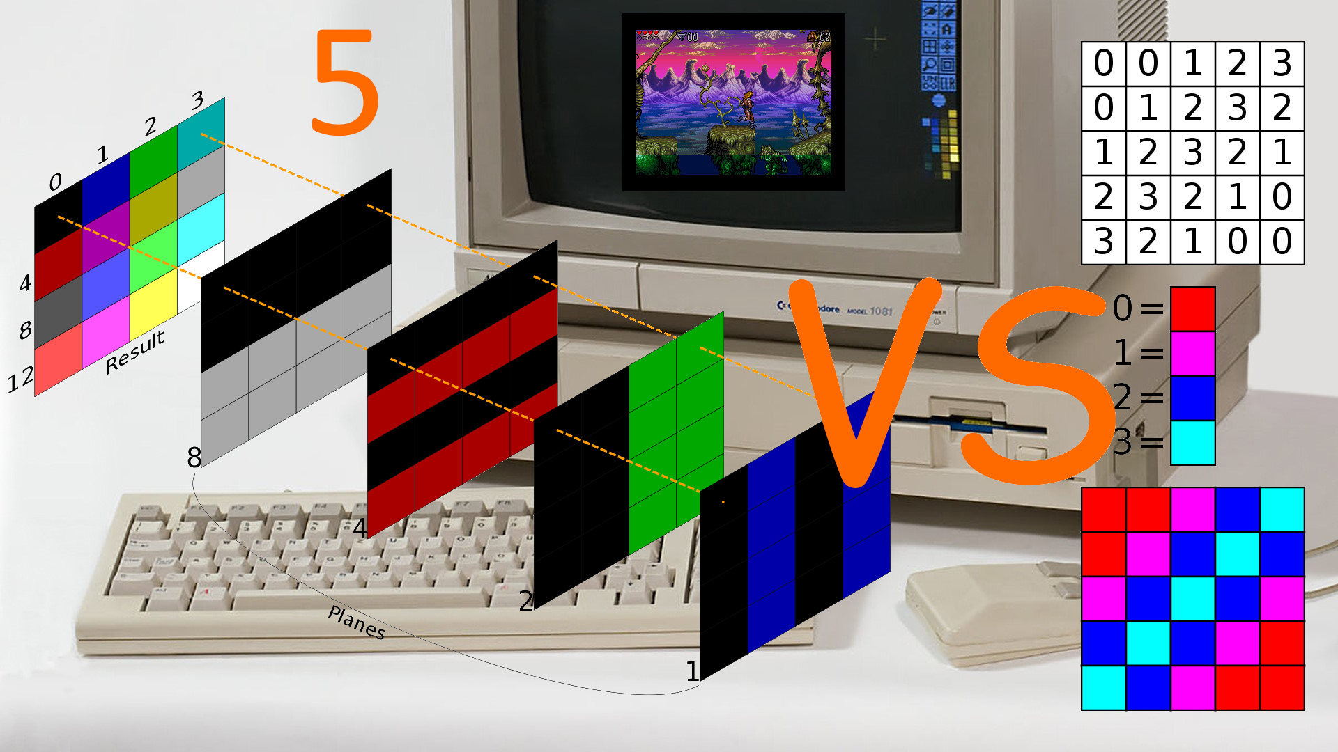 Direi che i numeri si commentino da soli, pur tenendo conto della complessità richiesta dall’implementazione della versione packed. Complessità che, però, è dovuta al fatto che l’implementazione packed ha quasi completamente disaccoppiato la lettura dei dati dalla dimensione del bus dati, oltre che dalla profondità di colore (numero di bit utilizzati per rappresentare gli indici dei colori), mentre l’implementazione planare dell’Amiga ha scaricato questa complessità su future (nonché onerose) richieste di risorse e sul numero di bitplane a disposizione (e quindi duplicazione di risorse), rispettivamente.
