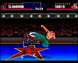 Inutile dire che, e per quanto scritto sopra, dei miglioramenti apportati dall’AGA ne abbiano beneficiato principalmente i giochi, a cominciare da quelli che utilizzano la modalità Dual Playfield, che con OCS/ECS era mortificata dalla possibilità di utilizzare soltanto 8 colori per il primo schermo (il fondale) e solamente 7 per il secondo (per i personaggi e altra grafica accessoria), mentre adesso si passa a 16 e 15 rispettivamente, com’è possibile notare in un altro capolavoro, Shadow Fighter: