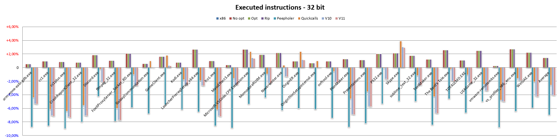 Fortunately, the v10 version made up for quite a bit of this loss, while it is interesting to note that, at least with regard to the number of executed instructions, v11 also makes a small contribution.