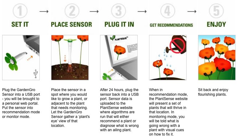 Il funzionamento è molto semplice. Si inserisce nella terra accanto alla pianta da monitorare il dispositivo, che grazie ad un sensore raccoglierà tutte le informazioni relative al terreno. Dopo 24 ore si collega il dispositivo al computer via USB e un software ci dirà, dopo aver analizzato il terreno, quale comportamento tenere per far fiorire la pianta.