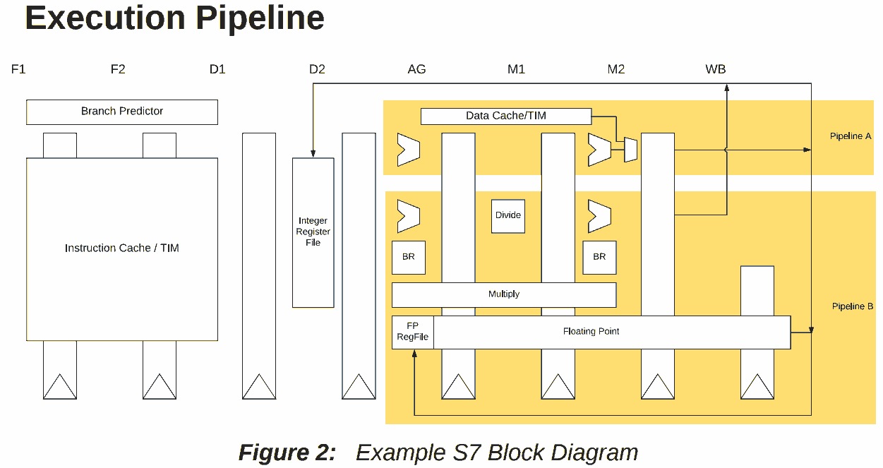 The S7 execution unit is a dual-issue, in-order pipeline. The pipeline comprises eight stages: