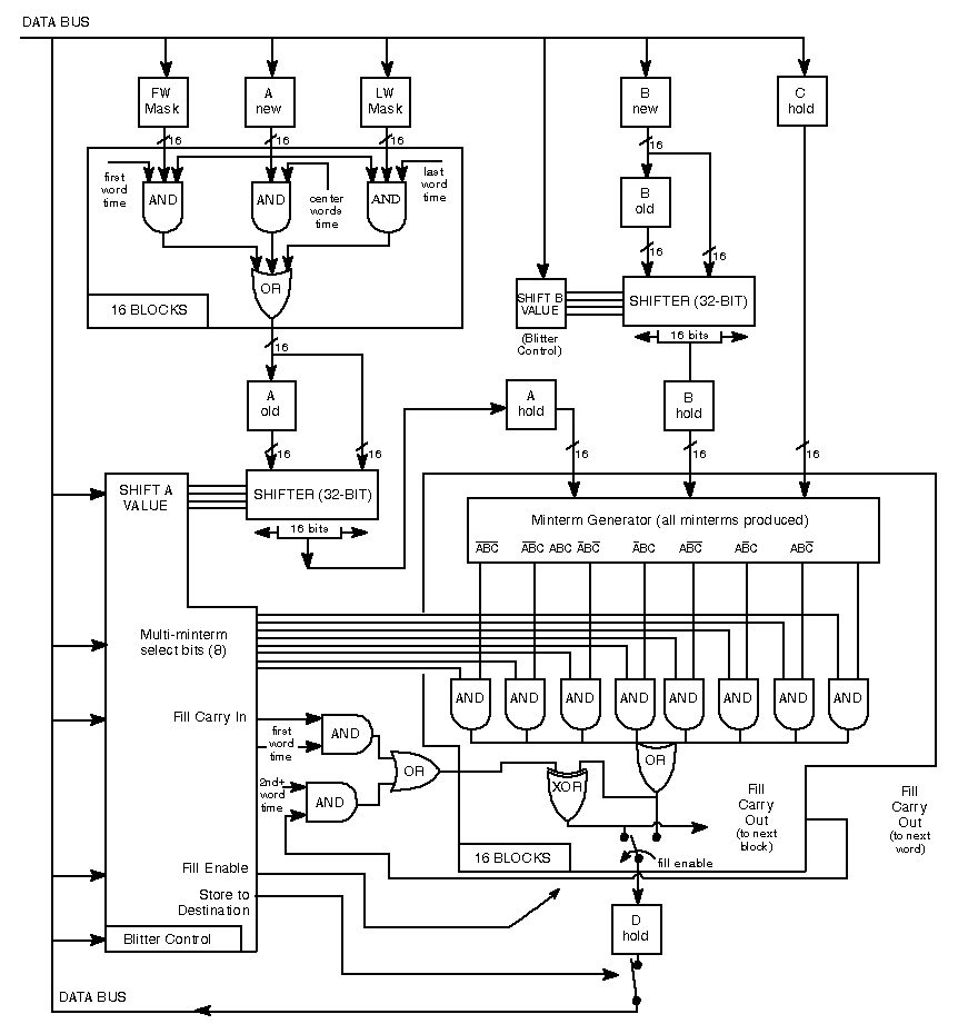 A questo punto, e con questa logica implementata, il Blitter è pronto per poter operare con “bus” dati di qualunque dimensione, senza che venga toccato di una virgola il modo in cui programma, a parte impostare un bit in uno dei suoi registri di controllo per abilitare il nuovo comportamento (sempre per questioni di retrocompatibilità).