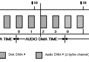 Quando si parla dell’allocazione del DMA per accedere alla memoria da parte i vari dispositivi il concetto più importante da comprendere è che tali slot rappresentano soltanto un’opportunità per essi, che possono decidere di cogliere oppure no (quindi lasciandoli liberi di essere utilizzati da Copper, Blitter, o CPU).