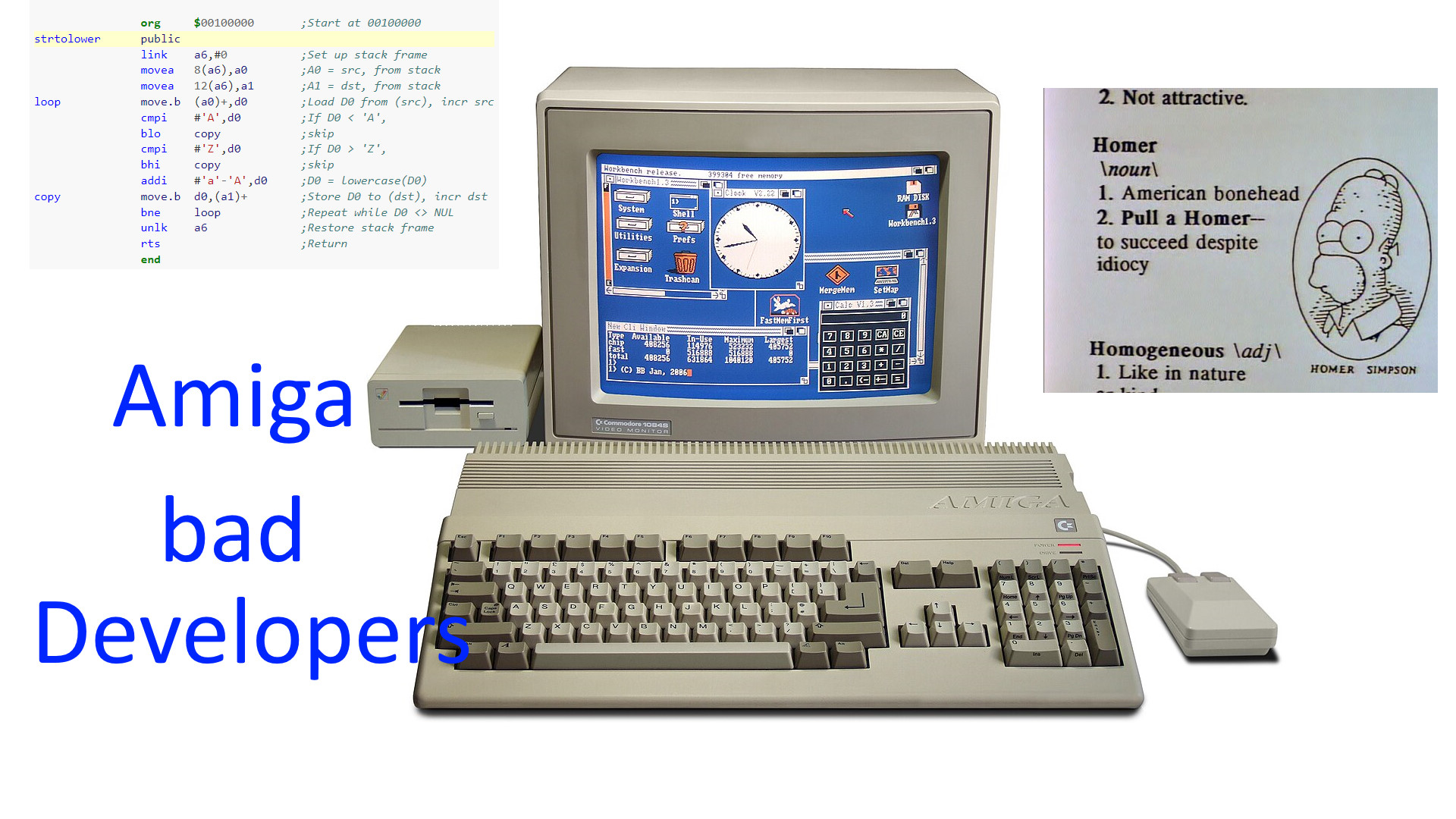 Sia chiaro che l’Amiga non è il solo sistema dove programmatori inetti abbiano fatto danni, poiché quello della gente che è passata troppo velocemente dalla zappa alla tastiera è un problema generale, ma essendo stato il mio habitat informatico per parecchi anni (e ancora oggi continuo a interessarmene, perché ne rimango un appassionato) è quello che mi ha fatto provare di più sulla pelle e prendere atto della tragica situazione.