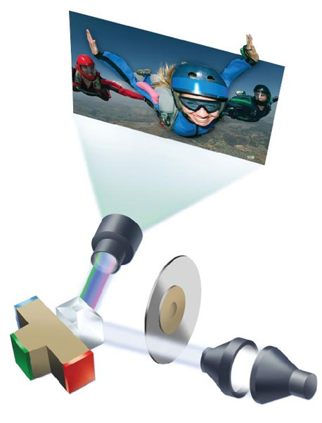 Il Dolby 3D, usa un disco delle dimensioni di un CD posizionato tra la lampada e il proiettore digitale. La ruota fa sei giri completi per ogni frame del film creando una sorta di “sfarfallio” delle immagine che vengono, simultaneamente, sincronizzate dall’utente stesso tramite degli occhialini dotati di shutter digitale LCD incorporato. Occhiali tecnologicamente innovativi ma costosi da produrre.