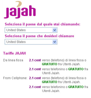 Quello che Jajah permette di fare in Italia sono chiamate gratuite tra utenti registrati, da fisso a fisso, e chiamate a tariffe che ormai sono quelle di mercato, da e per numeri di telefonia mobile. Non molto in verità.