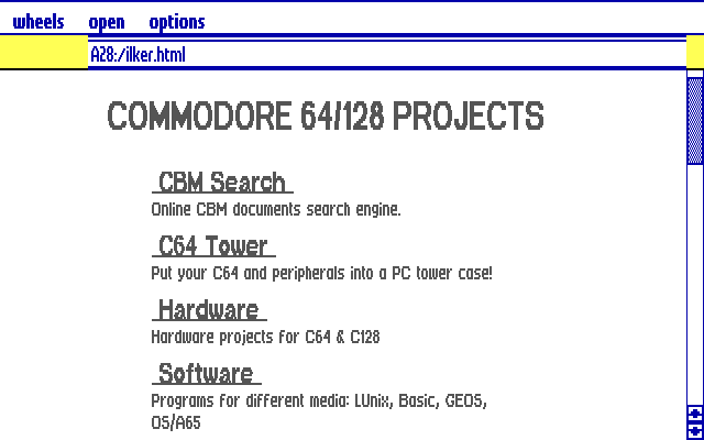 C64 su Internet - courtesy of cbmitapages.itPer gli eroi che volessero collegarsi ad Internet col fido C64, ci sono abbondanti guide e soluzioni: dalla connessione via shell e modem a 300 baud, possibile anche su C64 lisci e con lettore datassette e TV, fino alla configurazione per sboroni ovviamente con SuperCPU, floppy disk, interfaccia seriale accelerata Turbo232, monitor, connessione PPP, OS grafico – Wheels, Contiki o CLiPS – e web browser.