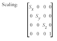 In questo ambiente si definiscono anche le proprietà dei singoli oggetti e delle loro superfici, il tipo di animazione e di illuminazione. Il vantaggio dell’utilizzo di coordinate omogenee risiede nella possibilità di effettuare una trasformazione di coordinate, una traslazione, uno scaling, un operazione di shearing, una rotazione di un oggetto attorno ad uno dei suoi assi, ecc. facendo uso di moltiplicazioni tra vettori e matrici. Lo stesso posizionamento dei singoli oggetti all’interno del world space è effettuato tramite una moltiplicazione tra il vettore rappresentativo dell’oggetto e la matrice che definisce il nuovo sistema di assi.
