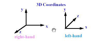 Una volta definiti, gli oggetti sono posizionati all’interno di uno spazio comune, detto WORLD SPACE, in cui essi sono mesi in reciproca relazione spaziale potendo fare riferimento ad un sistema di coordinate unico. In grafica 3D si fa uso di una terna di riferimento “sinistra”, in cui il pollice rappresenta l’asse Y, il medio l’asse X e l’indice l’asse Z