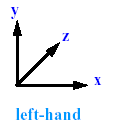 Una volta stabilita la posizione dell’osservatore che non coincide necessariamente con l’origine degli assi del WORLD SPACE, si fissa il sistema di coordinate utilizzando una terna sinistra, orientata in modo tale che X, Y e Z coincidano rispettivamente, con l’asse orizzontale, quello verticale e quello che attraversando perpendicolarmente il piano XY nella sua origine (posizione dell’osservatore) dà indicazioni sulla direzione ed il verso in cui si guarda.