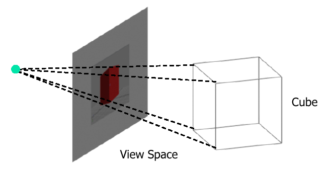 Si compie un’operazione analoga a quella di porre una cinepresa dove si trova l’osservatore (che indicherò con O), che proietta l’immagine che viene visualizzata; la differenza rispetto ad una proiezione cinematografica è che il target non è un piano bidimensionale (lo schermo cinematografico) ma uno spazio 3D che sarà delimitato, a questo punto, da una piramide che ha la sommità posta in O e l’asse Z coincidente con l’altezza.