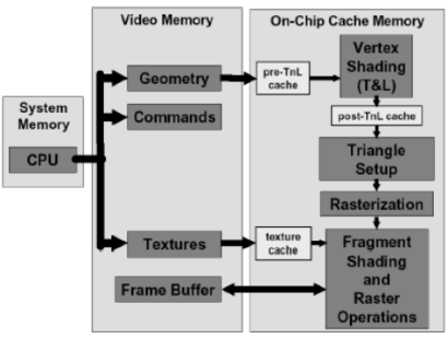 o una pipeline di rendering con i relativi blocchi e le operazioni in essi svolte.