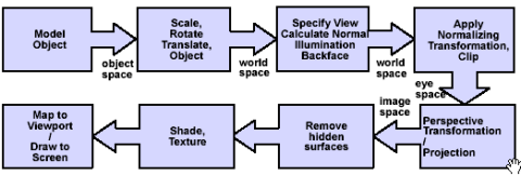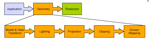 Siamo giunti alla fine delle elaborazioni di tipo geomentrico, allo stadio che nello schema di pipeline classica riportato in basso, è indicato come screen mapping