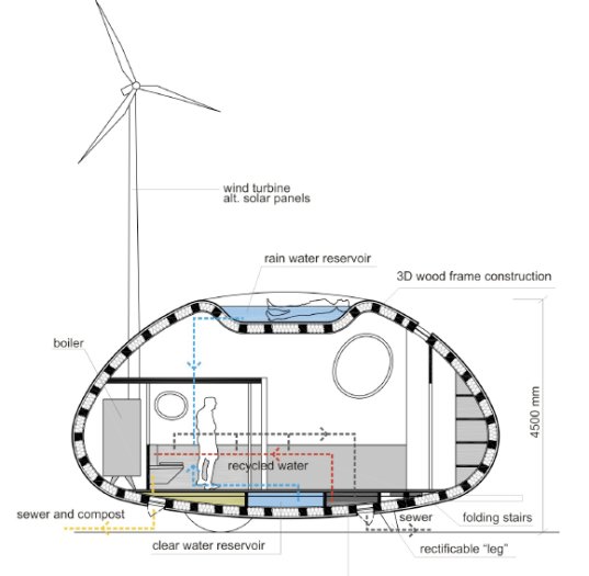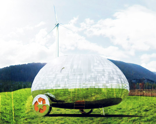 Una struttura abitativa contemporanea, compatta, costruita con materiali eco-compatibili e completamente autosufficiente. Insomma: una roulotte aerodinamica ed ecologica.