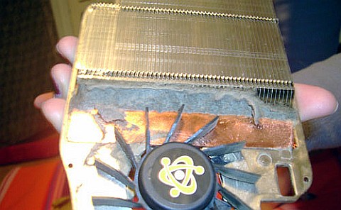 Un ulteriore immagine, qui sotto, mette in risalto come un dissipatore per VGA si presenti dopo pochi mesi di funzionamento all’interno di un PC. Impressionante la quantità di polvere accumulata, che impediva un corretto raffreddamento del chip della scheda, con blocchi di sistema e quant’altro.