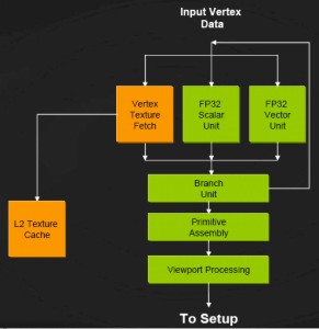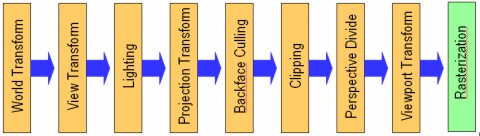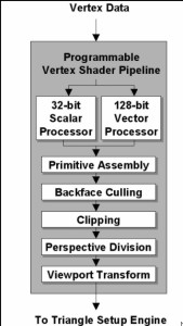 dove la vertex pipeline è composta da tutti i blocchi di colore giallo, per la cui funzione rinvio a questo articolo ed ai due seguenti.