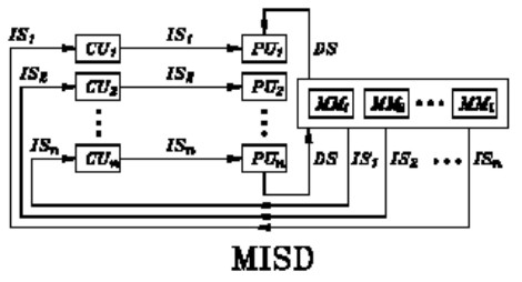 L’architettura MISD (multiple instruction single data) esiste solo a livello sperimentale, ma non è mai stata commercializzata. La sua schematizzazione è indicata nella figura seguente