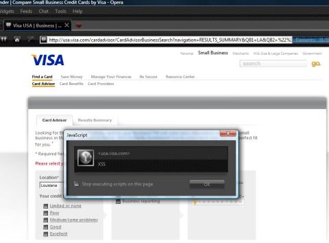 La crew Team Elite, la quale sembra aver raccolto in qualche modo lo scettro di HackersBlog, dopo essersi fatta notare per alcune vulnerabilità trovate nei portali di McAfee e RIAA, è tornata alla ribalta segnalando ben quattro siti a rischio gestiti da Visa: usa.visa.com, visacemea.com, visa.com.ua e visamiddleeast.com.