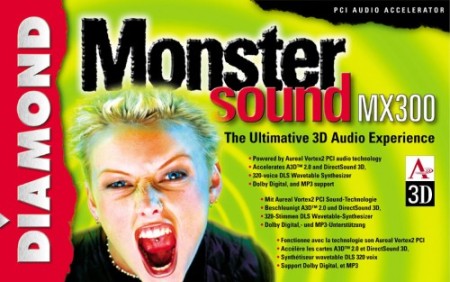 Non contenta del successo ottenuto, solo un anno più tardi, nel 1998, Aureal presentò il suo nuovo processore audio Vortex 2 (AU8830) assieme alla versione 2.0 dell’A3D. Anche in questo caso il salto tecnologico fu notevole se rapportato all’appena presentato EAX di Creative. La seconda generazione di processori Vortex portava la sua potenza di calcolo a ben 800 MIPS il che gli consentiva di applicare algoritmi di HRTF più complessi e realistici. Il numero di fonti sonore dell’ambiente posizionale elaborate in parallelo passò da 16 a 64, mentre salì da 48 a 64 il numero di canali DMA per l’accesso verso la memoria RAM del PC. Inoltre con il Vortex 2 Aureal introdusse anche un circuito custom che eliminava in hardware il problema del crosstalking, cioè la diafonia dovuta all’interferenza elettromagnetica che si può presentare quando due segnali passano fisicamente su cavi vicini, molto comune tra i due canali di un segnale stereo.Aureal ebbe un interessante successo commerciale e celebre fu la scheda audio Diamond Monster MX300 di Diamond Multimedia, una delle massime espressioni del chip audio Vortex 2 grazie ad alcuni accorgimenti costruttivi come un DAC a 18 bit ad alta qualità e i connettori placcati in oro.Come tristemente annunciato all’inizio di questo post, l’avventura di Aureal Semiconductor ebbe fine nel 2000, a seguito di una battaglia legale sostenuta contro Creative nel corso degli ultimi due anni, battaglia che riuscì persino a vincere, ma che ne prosciugò le risorse economiche al punto da costringerla a svendersi alla stessa Creative per 31 milioni di dollari.