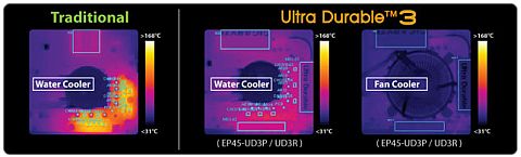Gigabyte risponde che l’uso di una maggiore quantità di rame nel PCB della scheda madre favorisce una migliore dissipazione termica dei componenti intorno al socket CPU, risultando in un abbassamento di addirittura 50°C dei componenti responsabili di gestire il voltaggio del processore.