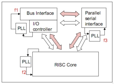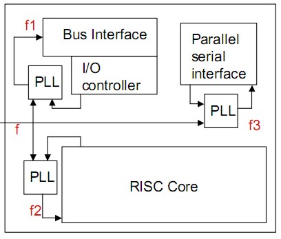 in cui f è la frequenza del sistema e f1, f2 ed f3 sono maggiori di f e tutte differenti tra loro. Anche in questo caso è possibile operare in modo da avere variazioni dinamiche della frequenza nei vari circuiti. Un’evoluzione del precedente schema è quella denominata GALS (global asynchronous local synchronous)