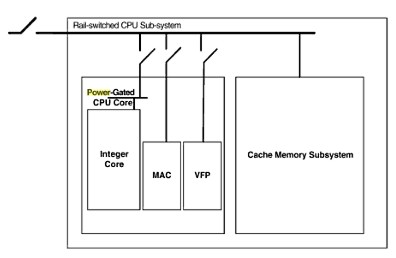 Uno dei modi visti per ridurre la potenza dissipata in un circuito è quello di evitarne la commutazione qualora non fosse necessaria; per far ciò, si ricorre al cosiddetto clock gating. Abbiamo anche fatto cenno alla possibilità di regolare frequenza e tensione in base alle esigenze del momento, all’interno di determinati range. Ora faremo un breve cenno alla possibilità di togliere del tutto tensione ad un circuito, qualora questo non fosse coinvolto in una determinata elaborazione.