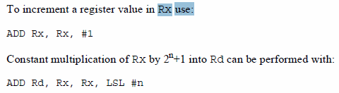 Ciò consente di sfruttare meglio il barrel shifter integrato, ottenendo prestazioni più elevate e richiedendo anche meno istruzioni perché, fatemi passare il termine, le istruzioni di shift risultano sostanzialmente “gratuite”.