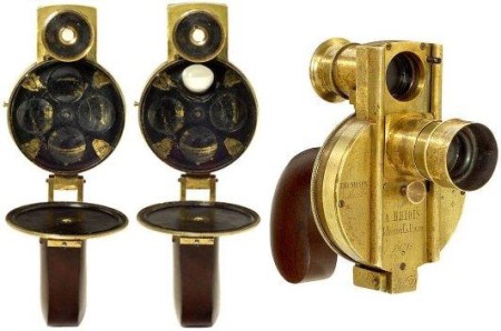 Famosa è infatti la “Revolver Camera” conosciuta anche come Thompson Camera costruita a Parigi nel lontano 1862. Rarissima macchina da presa recentemente battuta all’asta per poco più di 60000 euro. La Thompson monta un obiettivo Petzval F2 da 40mm e l’immagine viene impressionata su un disco circolare da 7 cm.