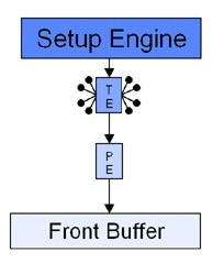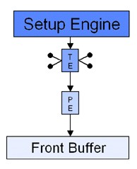 Chiusa questa parentesi, mettiamo a confronto l’architettura della pipeline del G200 con quella, ad esempio, del Riva 128, con la prima delle due più a sinistra