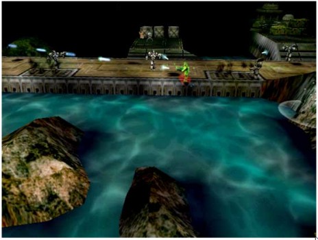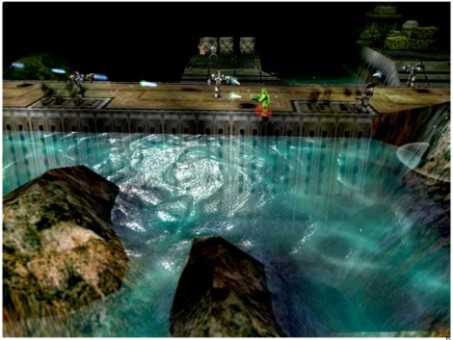 Il G400 ripropone le stesse soluzioni tecniche viste sul G200, ossia: dual bus ma, questa volta con interfaccia verso le ram a 128 bit e architettura interna composta da 2 bus da 128 bit ciascuno e VCQ2. In più, rispetto al G200, ha la doppia pipeline di rendering e una delle feature più pubblicizzate del momento: l’EMBM (environment mapped bump mapping), ideata dai Bitboys e “licenziata” a matrox ed altre, tra cui ATi e nVidia, introdotta nelle specifiche delle DX6 ma non supportata da chip DX7, come le Geforce 256 e le Geforce 2. L’EMBM prometteva (già da allora) mirabolanti effetti realistici come mostra l’immagine tratta dal gioco Expendable,