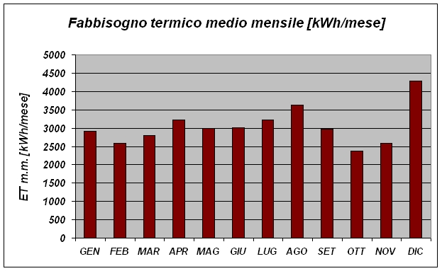 L’andamento dell’energia termica media mensile richiesta è rappresentata anche nel seguente diagramma: