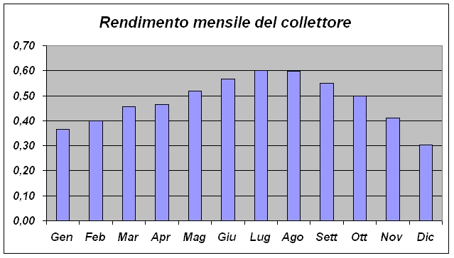 Il rendimento del collettore presenta il seguente andamento mensile: