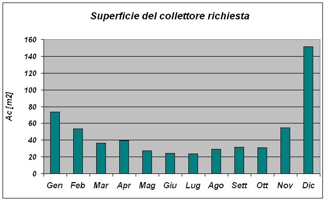 Si valuta a partire da questi dati la superficiedel collettore necessaria mensilmente per il soddisfacimento del 100% del fabbisogno.
