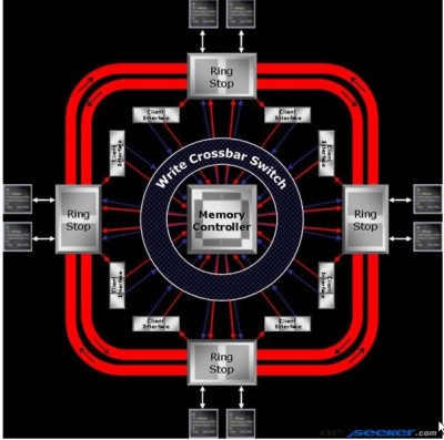 Il bus verso la memoria è a 256 bit, di tipo crossbar, con 4 bracci da 64 bit ciascuno (32 da e 32 verso la ram) ognuno dei quali ottimizzato per gestire l’accesso a 2 banchi di ram.