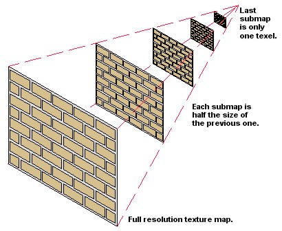 La creazione di questa struttura a “piramide” è definita mipmapping e serve ad avere, per ogni livello di dettaglio, la texture adeguata da applicare.