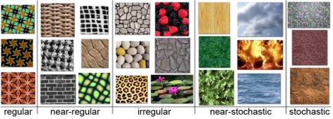 Queste texture sono caratterizzate dalla ripetitività dello stesso motivo e sono facilmente identificabili, in quanto, ad esempio, tornando sempre al solito muro, se sulla superficie di mattoni o pietre c’è una irregolarità, la stessa irregolarità si ritrova a intervallli… regolari. Una delle tecniche tipiche atte a generare texture con pattern di tipo “ripetitivo” è il tiling, che consiste proprio nel prendere una “tessera” contenente la trama che si vuole utilizzare e ripeterla ad libitum.