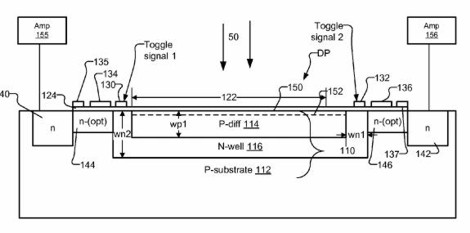 In basso sono riportati gli schemi di base di un collettore di luce basato su fotodiodo e su fototransistor rispettivamente (il secondo ha un circiuto più complesso e, di conseguenza, nell’ottica di un utilizzo su un sesnore di fotocamera o videocamera di tipo front illuminated, si deve tener conto della maggior superficie occupata dai circuiti elettrici