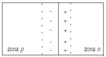 dove la zona tratteggiata è chiamata zona di svuotamento ed è caratterizata dalla presenza di lacune nella parte con drogaggio di tipo n e di elettroni in quella con drogaggio di tipo p. Come detto, il gap e quindi la possibilità che gli elettroni passino in banda di conduzione, variano con la temperatura, motivo per cui un dispositivo a semiconduttore, a temperature diverse dallo zero assoluto, presenterà sempre una seppur minima conducibilità.