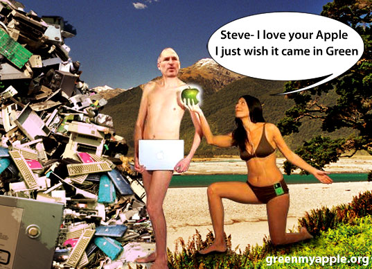 Da tempo Greenpeace promuove una serrata ed intelligente campagna www.greenmyapple.org che punta a sensibilizzare la casa di Cupertino ad una produzione più ecologica ed è presente online con un bel sito parodia che ricalca la grafica del portale Apple.