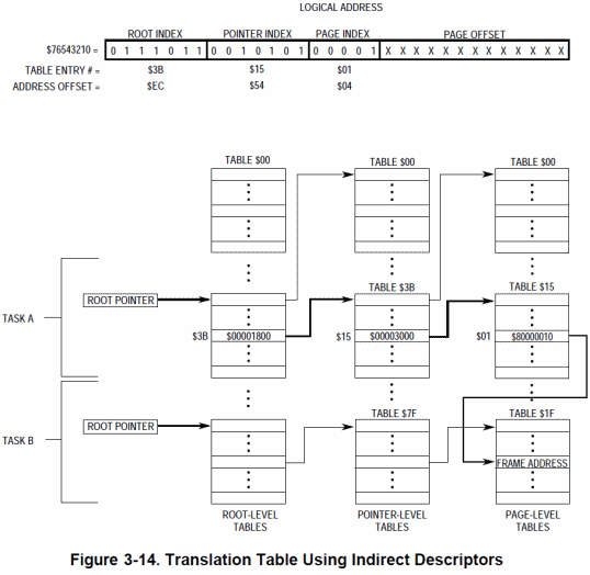 Infatti ognuna presenta due master page table (una per le pagine della modalità utente, e una per quella supervisore), registri di controllo, una coppia di registri per la traduzione trasparente di due aree di memoria e 64 elementi nell’Address Translation Cache (ATC) che memorizzano gli ultimi 4 indirizzi virtuali tradotti.