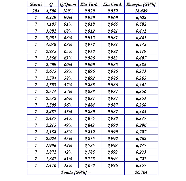 La produzione di energia, tenuto conto di tutto ciò, sarà: