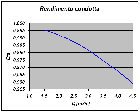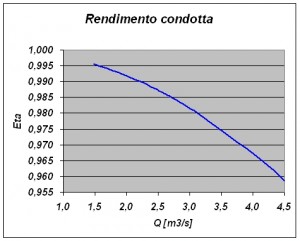 Risulta importante valutare le perdite di carico dell’impianto in modo da valutare quale risulta essere l’andamento del rendimento dello stesso in quanto influenzerà la produzione di energia complessiva, ma vista la lunghezza di tali calcoli risulta più semplice non riportarli ma limitarsi a mostrarne l’andamento in funzione della portata (intendendo con condotta il complesso della condotta, griglia e valvola):