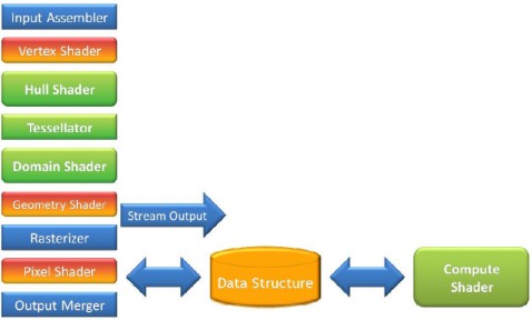 Infine arriviamo alla pipeline DX11 di cui riporto lo schema logico (che non coincide necessariamente con quello fisico, ovvero con il modo in cui sono disposti i circuiti all’interno del chip)