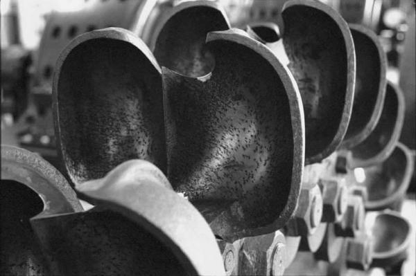 Dall’immagine è possibile anche eseguire un confronto visivo tra la girante ed una normale persona in termini dimensionali, considerando che le ruote Pelton raggiungono dimensioni anche più elevate rispetto a quella mostrata.