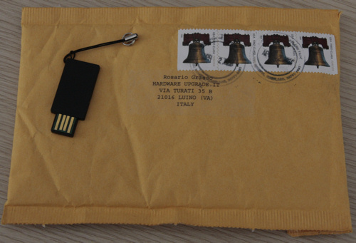 All’ora di pranzo arriva una busta in redazione proveniente dagli Stati Uniti con bollo di spedizione con data 2 aprile 2010. Il destinatario è Rosario Grasso HARDWARE UPGRADE.IT.